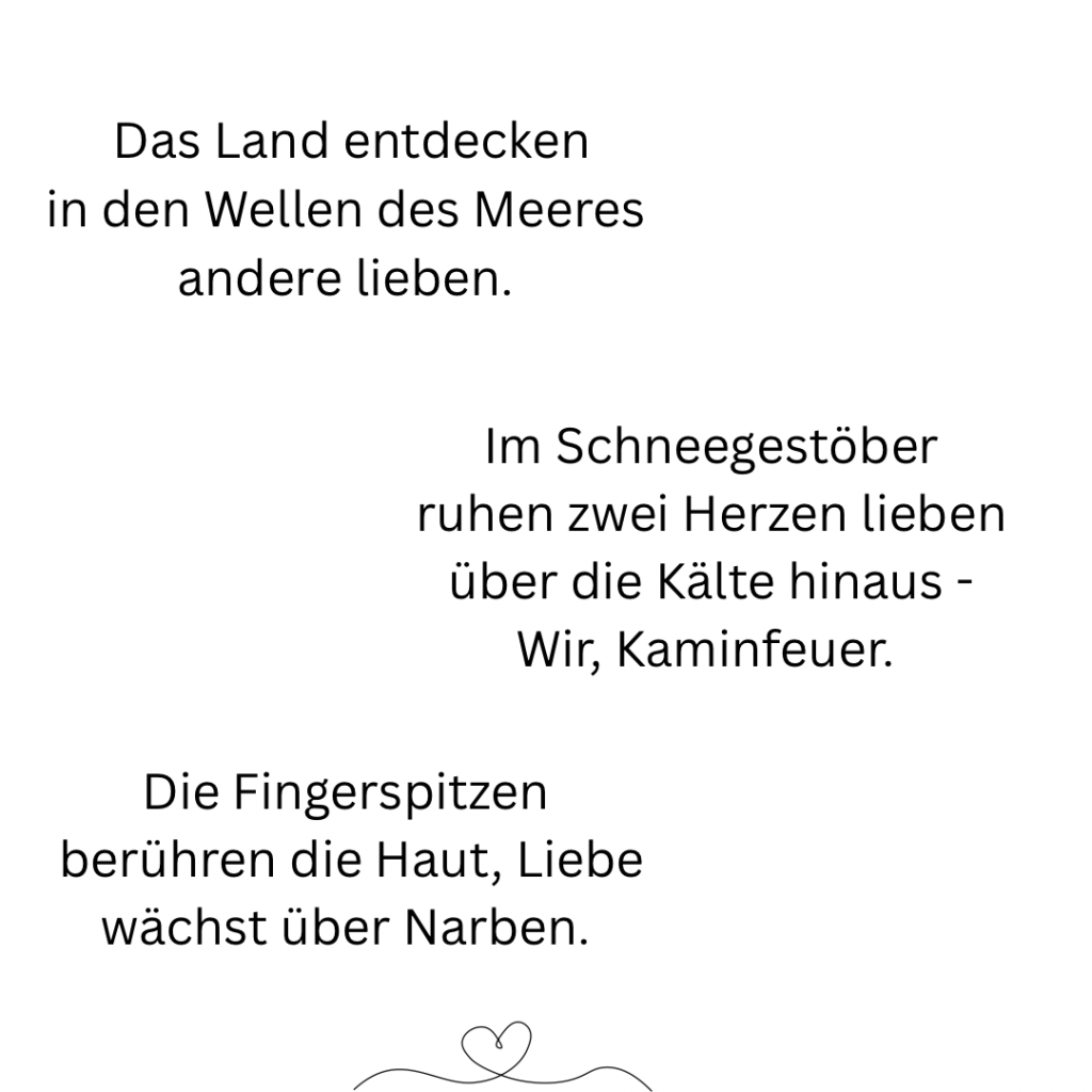 Ich bin kein Meister der Poesie. Manches mag sich holprig anhören, aber so ist mein Schreibstil. Ich bin auch nicht festgelegt auf eine Art von Text, jedenfalls noch nicht. Ich probiere gerne mal aus, dass merkt man auch an meiner Website: Sie ist recht bunt. Ich denke gerne bunt, denn für mich ist es das Leben auch. Mich freut es einfach, wenn der ein oder andere etwas mit meinen Texten anfangen kann oder sich vielleicht sogar darin wiederfindet. Viel Spaß beim Lesen. Und danke für euren Abstecher in meine kleine, bunten Welt. Vielleicht bis bald. 🤗 Lene