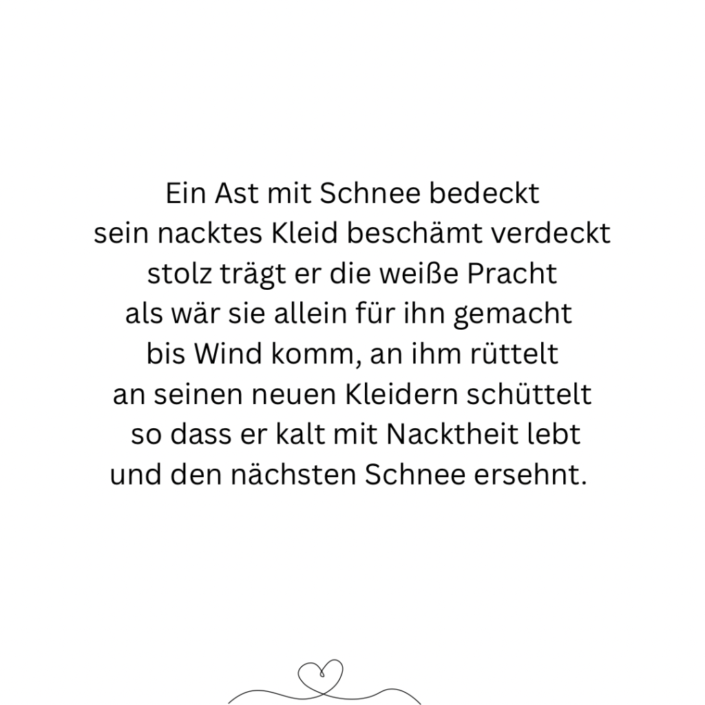 Ich bin kein Meister der Poesie. Manches mag sich holprig anhören, aber so ist mein Schreibstil. Ich bin auch nicht festgelegt auf eine Art von Text, jedenfalls noch nicht. Ich probiere gerne mal aus, dass merkt man auch an meiner Website: Sie ist recht bunt. Ich denke gerne bunt, denn für mich ist es das Leben auch. Mich freut es einfach, wenn der ein oder andere etwas mit meinen Texten anfangen kann oder sich vielleicht sogar darin wiederfindet. Viel Spaß beim Lesen. Und danke für euren Abstecher in meine kleine, bunten Welt. Vielleicht bis bald. 🤗 Lene