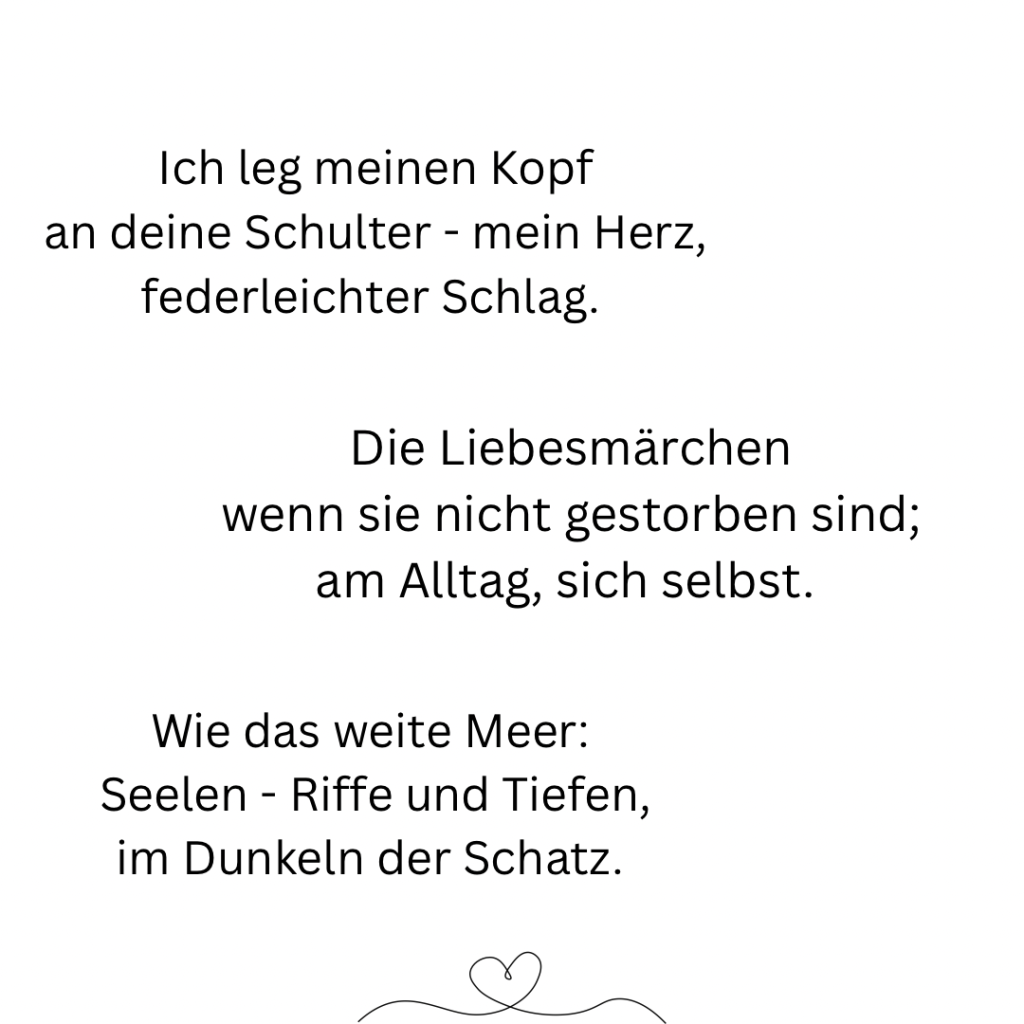 Ich bin kein Meister der Poesie. Manches mag sich holprig anhören, aber so ist mein Schreibstil. Ich bin auch nicht festgelegt auf eine Art von Text, jedenfalls noch nicht. Ich probiere gerne mal aus, dass merkt man auch an meiner Website: Sie ist recht bunt. Ich denke gerne bunt, denn für mich ist es das Leben auch. Mich freut es einfach, wenn der ein oder andere etwas mit meinen Texten anfangen kann oder sich vielleicht sogar darin wiederfindet. Viel Spaß beim Lesen. Und danke für euren Abstecher in meine kleine, bunten Welt. Vielleicht bis bald. 🤗 Lene