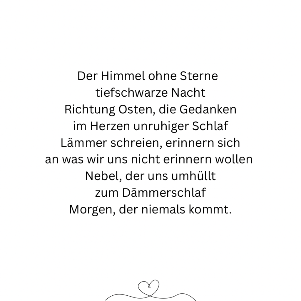 Ich bin kein Meister der Poesie. Manches mag sich holprig anhören, aber so ist mein Schreibstil. Ich bin auch nicht festgelegt auf eine Art von Text, jedenfalls noch nicht. Ich probiere gerne mal aus, dass merkt man auch an meiner Website: Sie ist recht bunt. Ich denke gerne bunt, denn für mich ist es das Leben auch. Mich freut es einfach, wenn der ein oder andere etwas mit meinen Texten anfangen kann oder sich vielleicht sogar darin wiederfindet. Viel Spaß beim Lesen. Und danke für euren Abstecher in meine kleine, bunten Welt. Vielleicht bis bald. 🤗 Lene