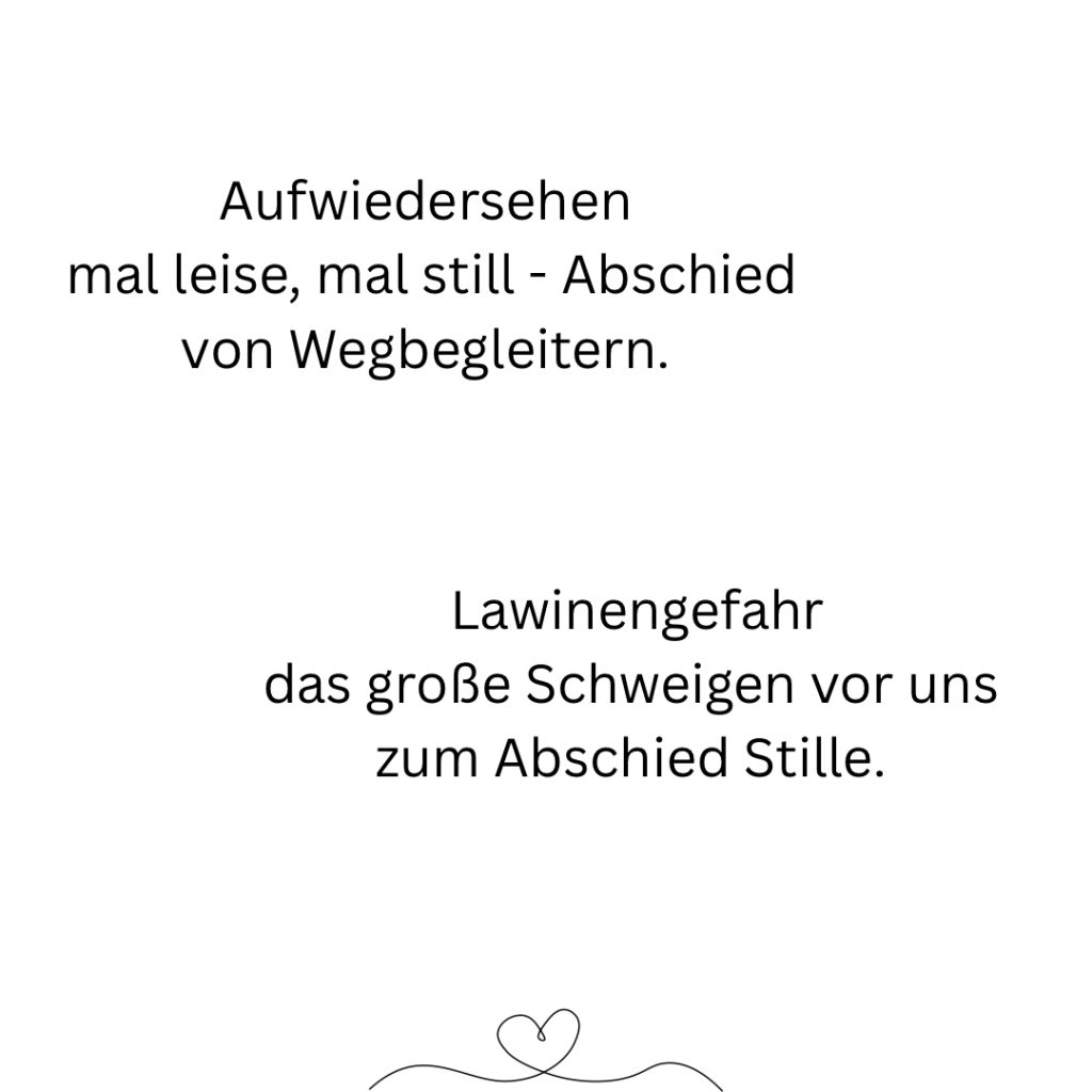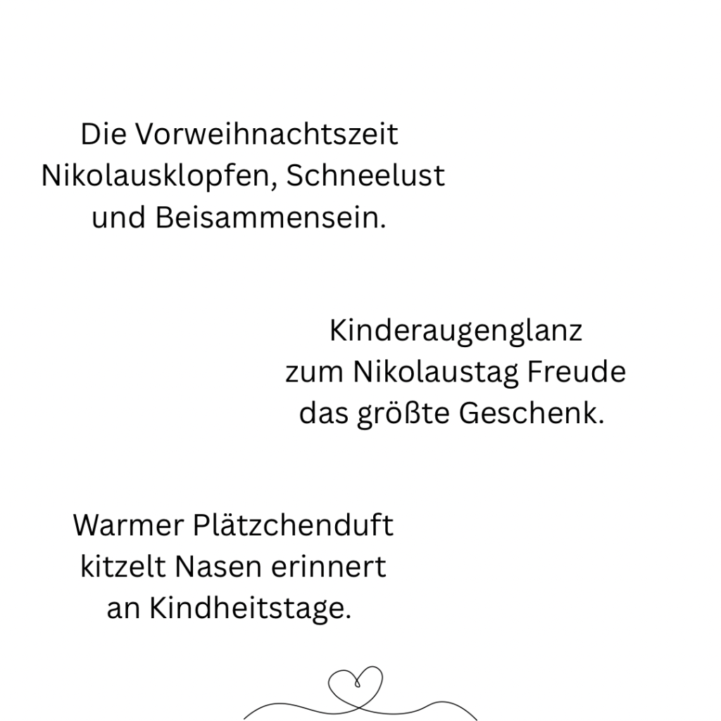 Der Blick aus dem Fenster, verwunschen an einem Novembermorgen; die Erde schüttelt sich, der erste Schnee fällt. Flocken tanzen ihr Winterballett zur Musik der Stille. Die weiße Landschaft in ihren kalten Kleidern, legt sich über Wiesen, Bäume und Felder, flüstert ruhevoll in unseren Herzen. Die Stille breitet sich aus, ein Gefühl von Frieden trägt uns nach Hause, zu uns selbst.